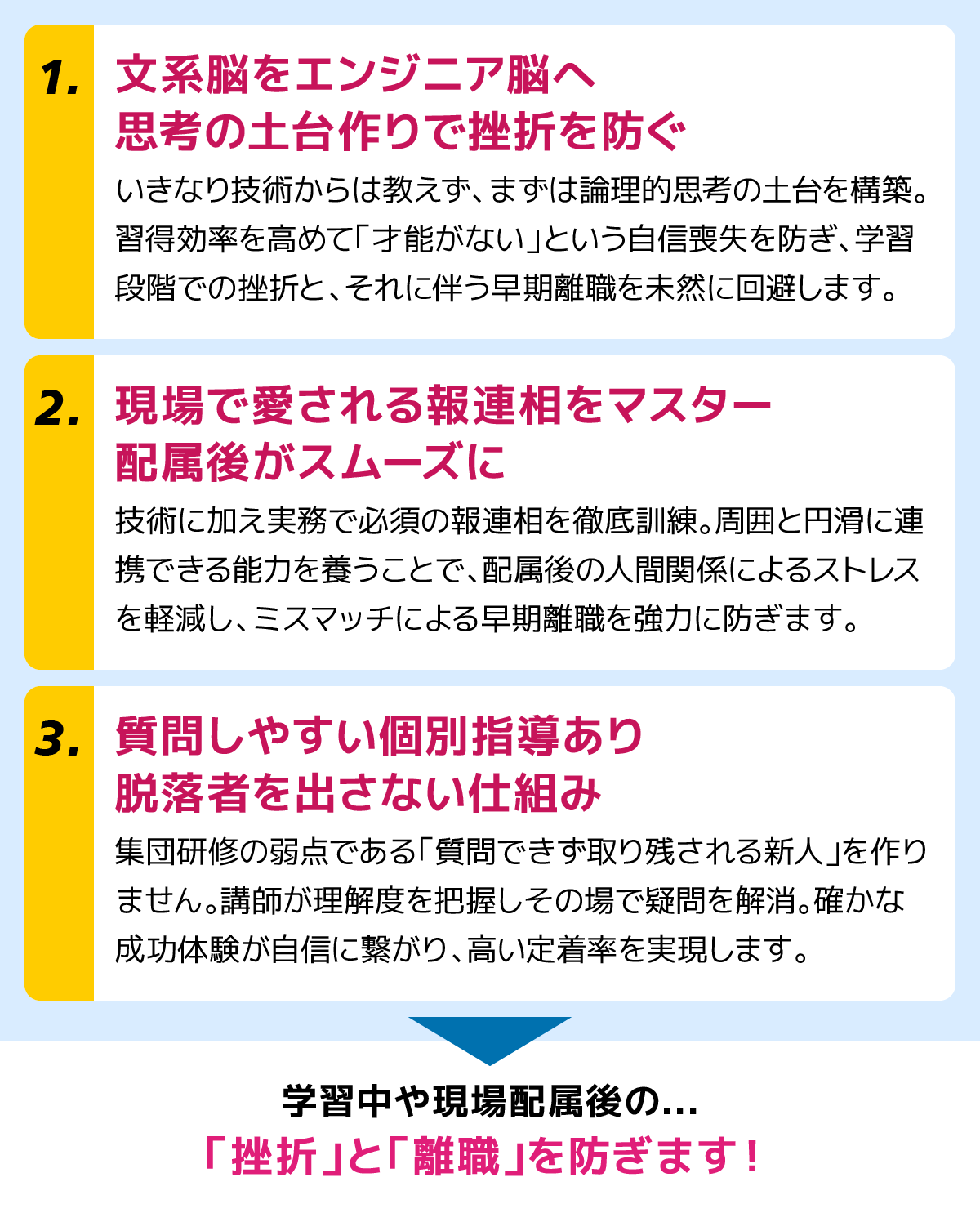 早期離職を防ぎ、現場で輝く即戦力へ変える。